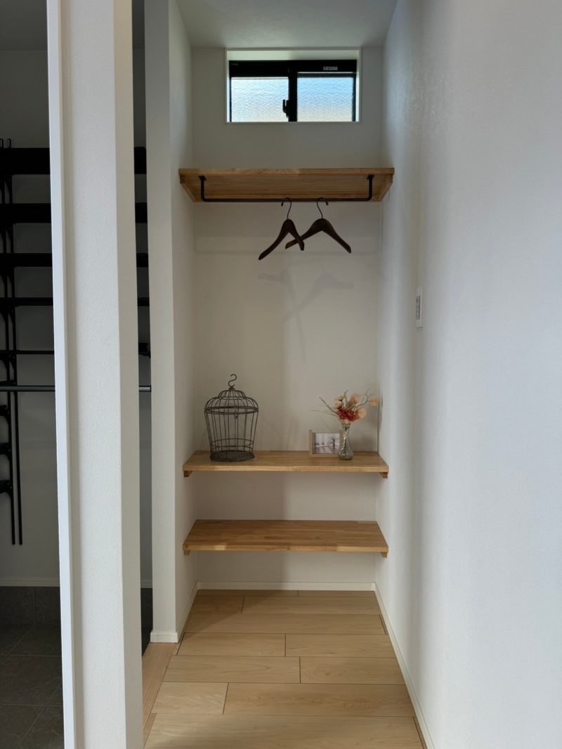玄関周辺には上着やお出掛けの際の荷物を置ける便利な『玄関クローク』