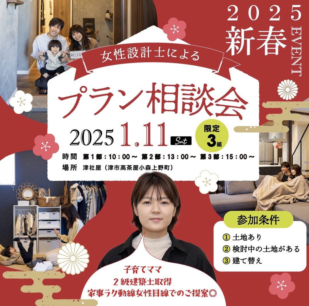 【津市高茶屋小森上野町】1月11日(土)▶《新春》女性設計士によるプラン相談会