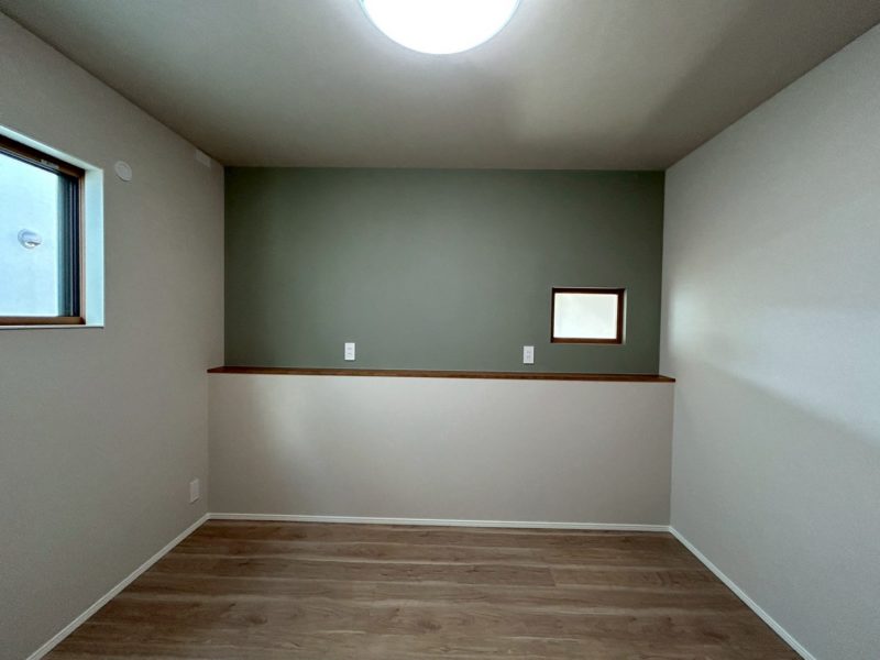 〇寝室腰壁上には可愛い装飾飾り窓。そこからは1階リビングで寛ぐ様子が見下ろせます