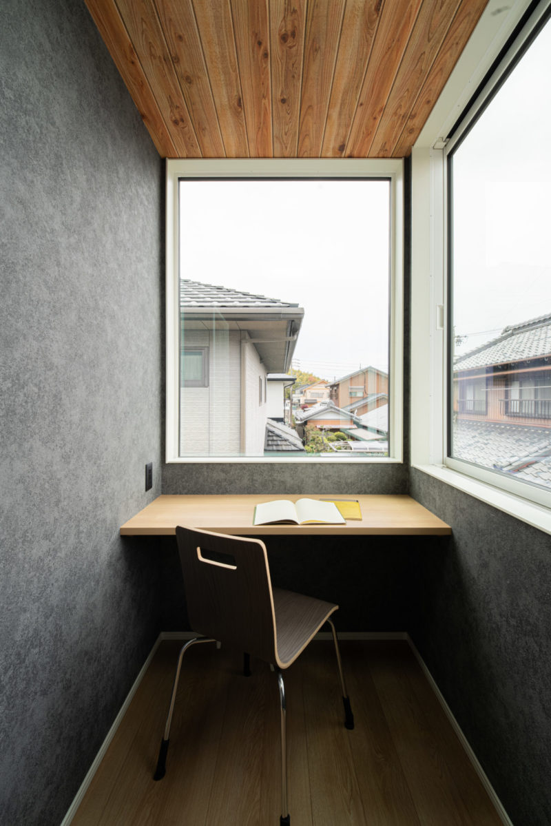 温かみのあるグレーの外壁に、オークの木目を組み合わせた