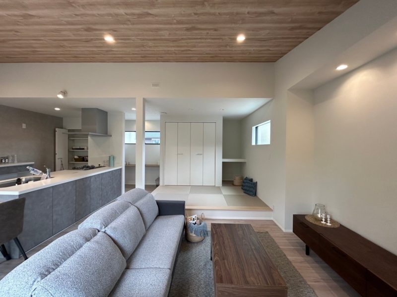 LDKのどこに家族が居ても姿が見れるオープンキッチン。