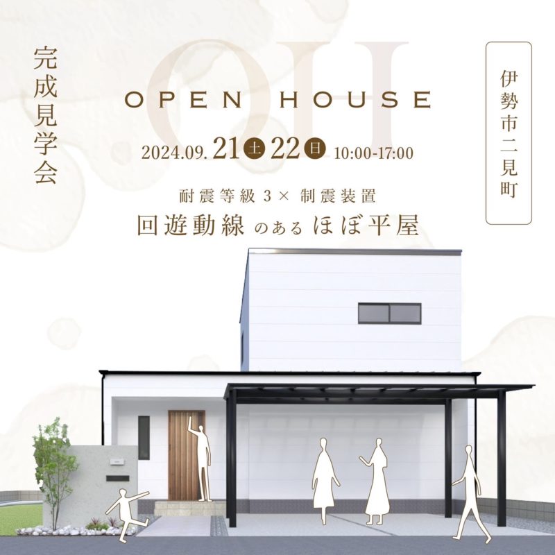 【伊勢市二見町】2024年9月21日(土)▶︎22日(日)〜耐震等級3×制震装置〜回遊動線のあるほぼ平屋