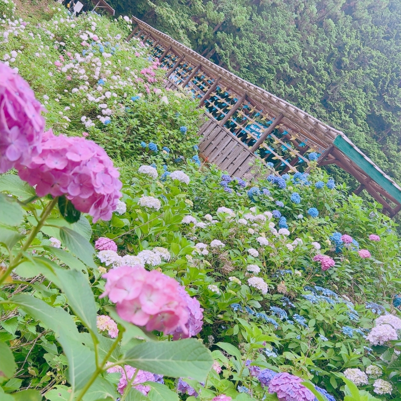 たくさんの色とりどりの紫陽花が
