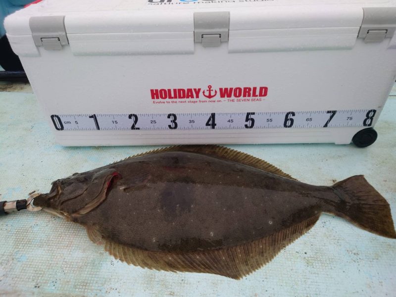 津市の池田建設 購買部 酒徳です。 趣味は釣りです。 先日座布団ヒラメを釣り上げました! 70cmから80cmに自己記録を更新しました。捌きはじめてお刺身にして食べるまで2時間近くかかりました。