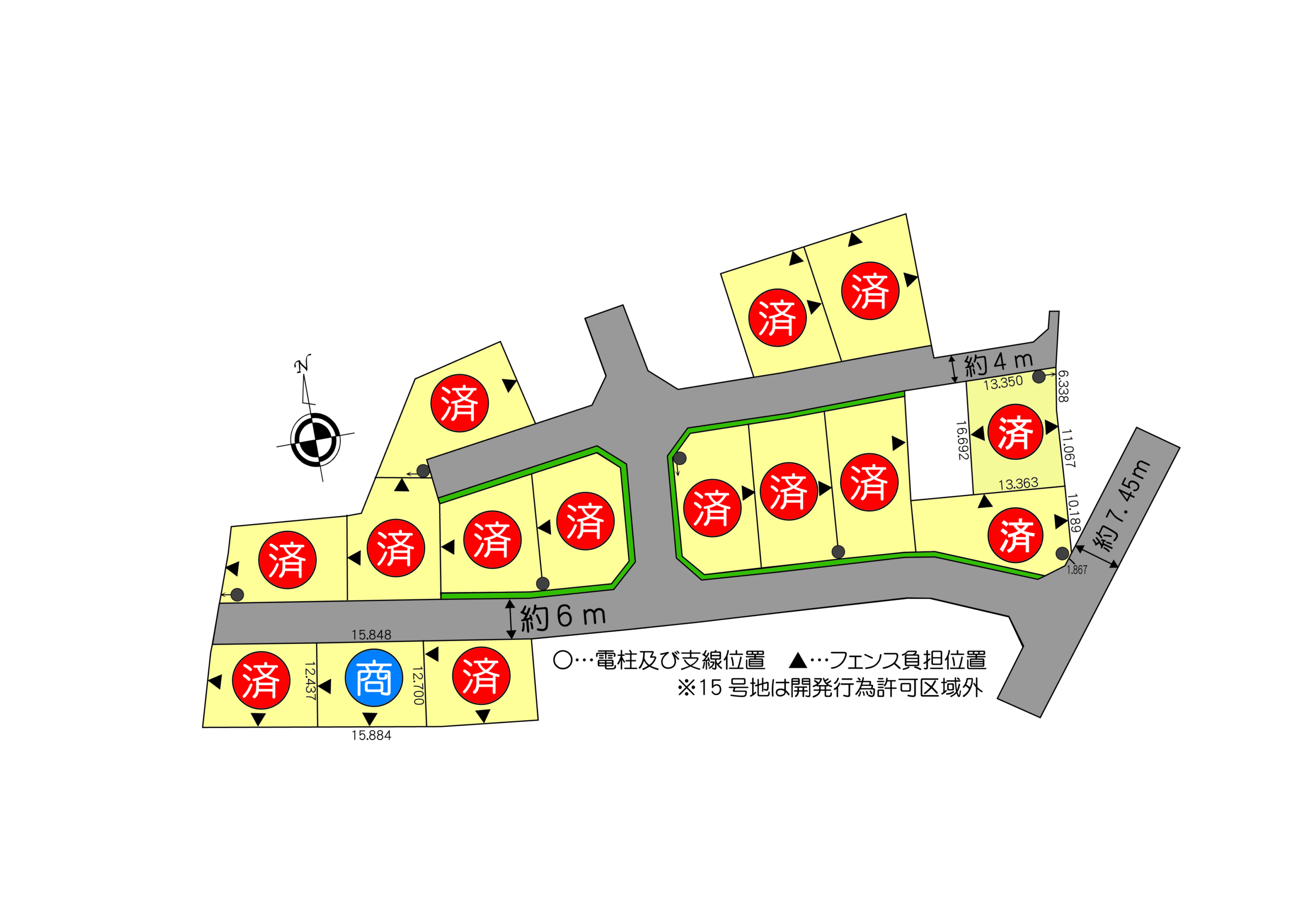 こちらの分譲地は13号地をご契約いただきますと完売となります。
