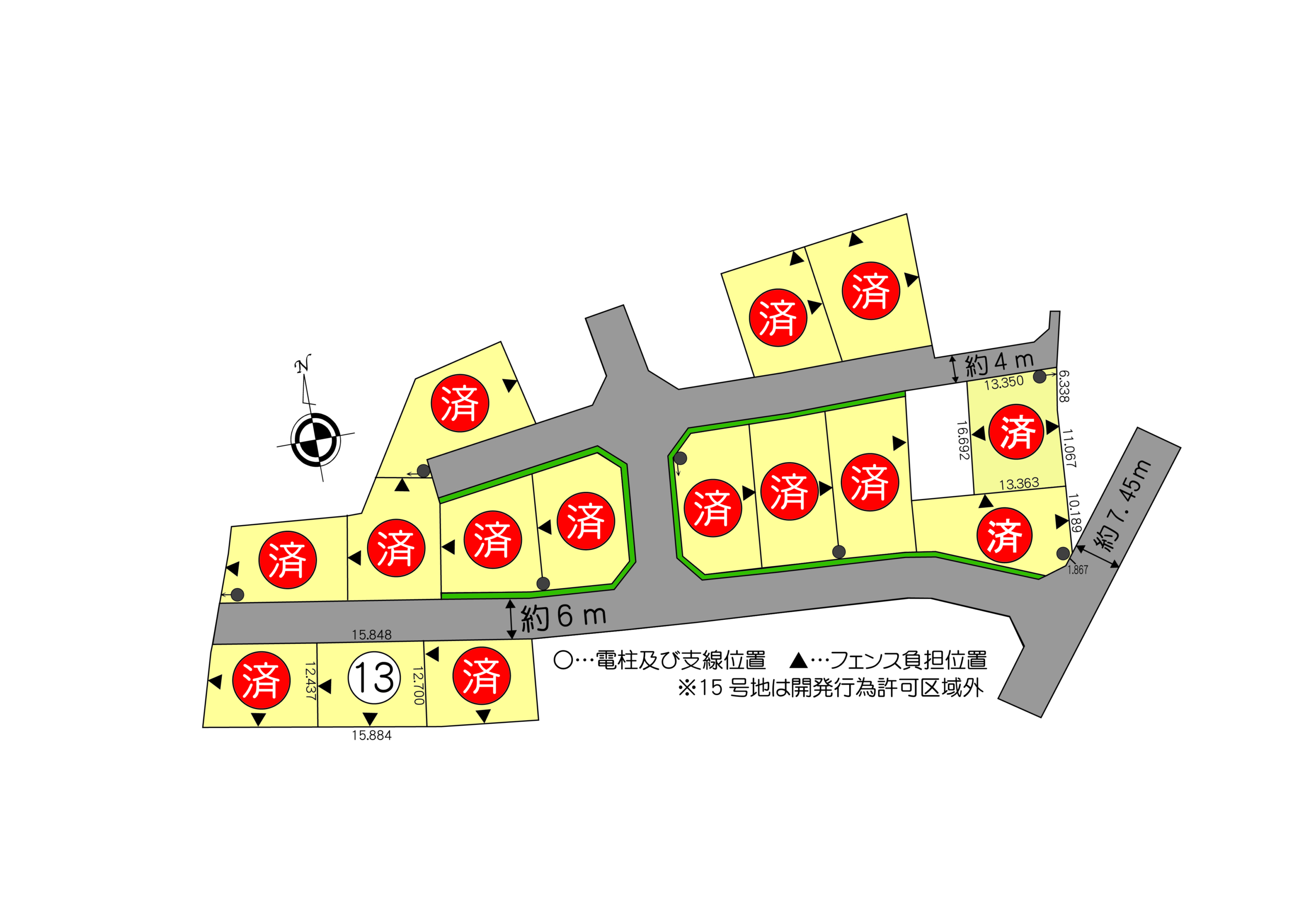 こちらの分譲地は残り2区画となります。 県道37号線へも出やすく、スーパーやコンビニエンスストア、 ホームセンターもすぐ近くにございます。