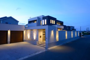 タイル貼りにこだわった、高級感のあるスタイリッシュな邸宅風住宅。
