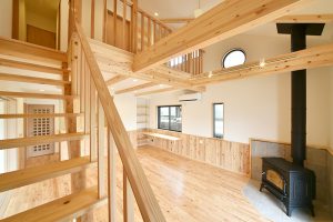 木のぬくもりと木目をいかした個性のあるデザインのお家