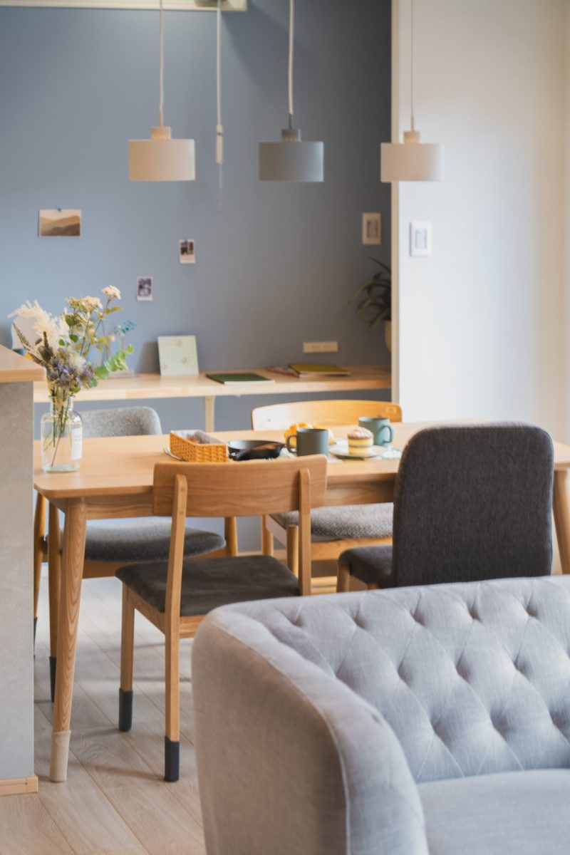 くすみブルーとナチュラルな色味が心地良い『北欧スタイルのほぼ平屋』