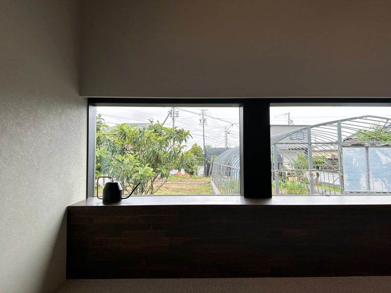 腰壁に3連風見せた窓。
