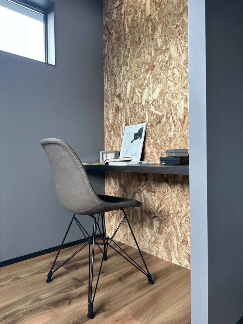 OSB合板張りもアクセントに