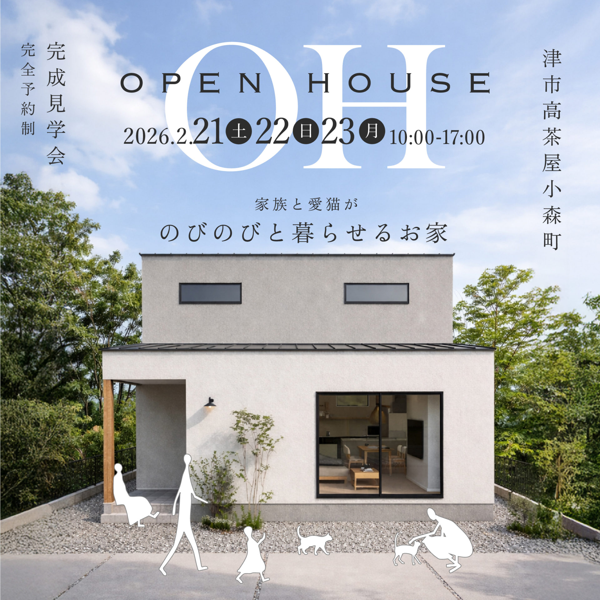 ◯玄関側の外壁に明かりを取り入れ、風が通るスリットがワンポイント。