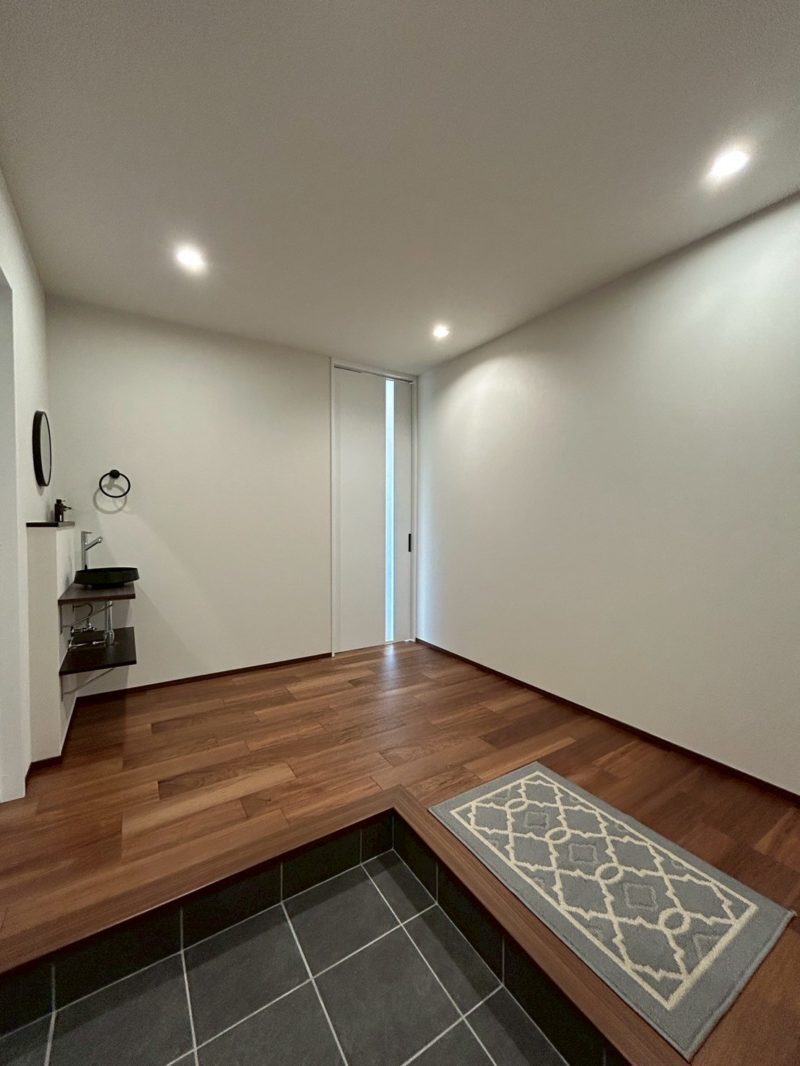 玄関ホールは “見せる=魅せる” コンパクト手洗いカウンターがお客様をお出迎え。